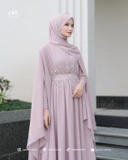 Abaya "Layali alQamar" hadir dalam warna nan lembut, melambangkan ketenangan dan kesucian, sangat cocok untuk momen spesial maupun tampilan syar'i sehari-hari.
